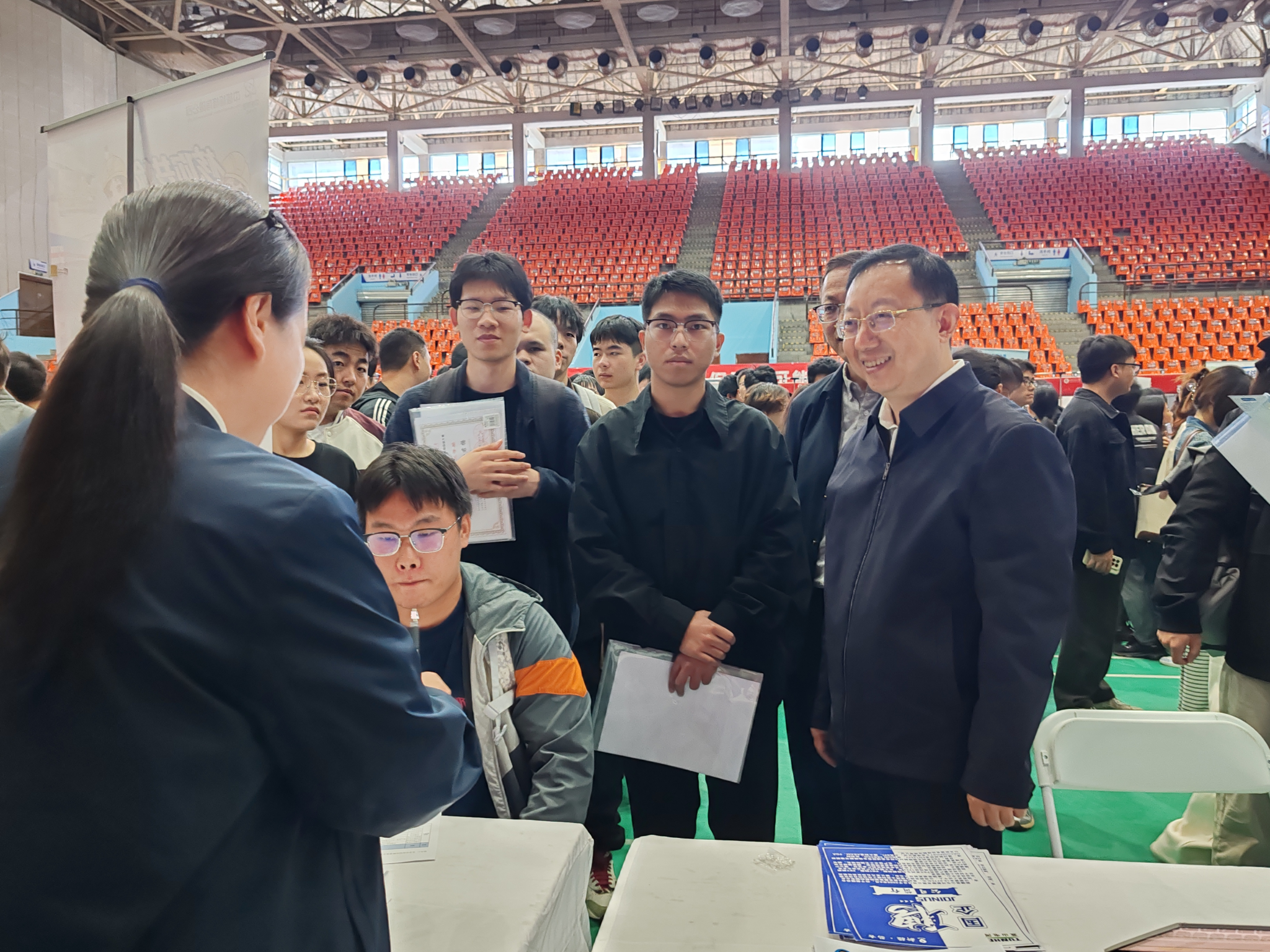 学科建设、人才培养特色及2026届毕业生规模与专业分布情况。希望校企双方以人才供需对接为窗口,进一步深化校企合作,建立长期稳定的人才输送与联合培养机制,共同为行业发展培育优质人才。在与毕业生交流时,他关切询问同学们的求职意向、目标岗位及面试进展,倾听大家在求职过程中遇到的困惑与需求。他叮嘱同学们要结合自身专业优势与职业规划,理性选择岗位,主动与用人单位沟通,同时鼓励广大毕业生到西部去、到基层去,到祖国最需要的地方建功立业,强调要树立“先就业、再择业”的正确就业观,积极把握就业机遇,在统筹社会价值的过程中实现个人价值。