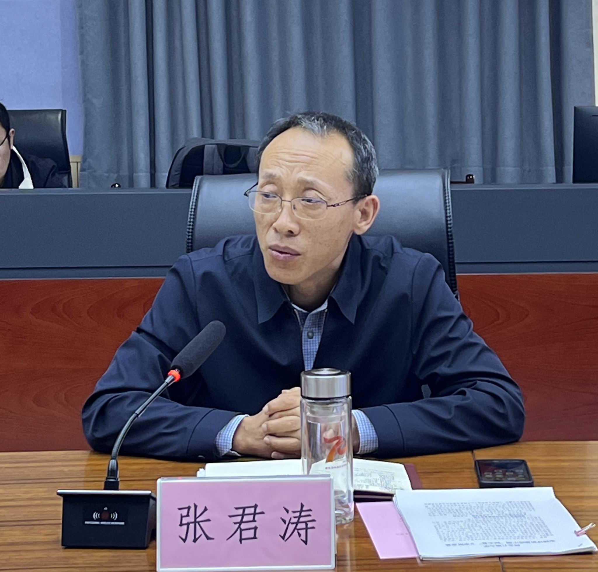 在鄠邑校区A116召开2025版本科人才培养方案实施与课程大纲修订研讨会。副校长张君涛出席会议并讲话。各院(系)教学副院长,实验室管理处(实验中心)、高教研究与评估督导中心相关负责人、教务处全体处科级干部参加会议。会议由教务处处长张益主持。