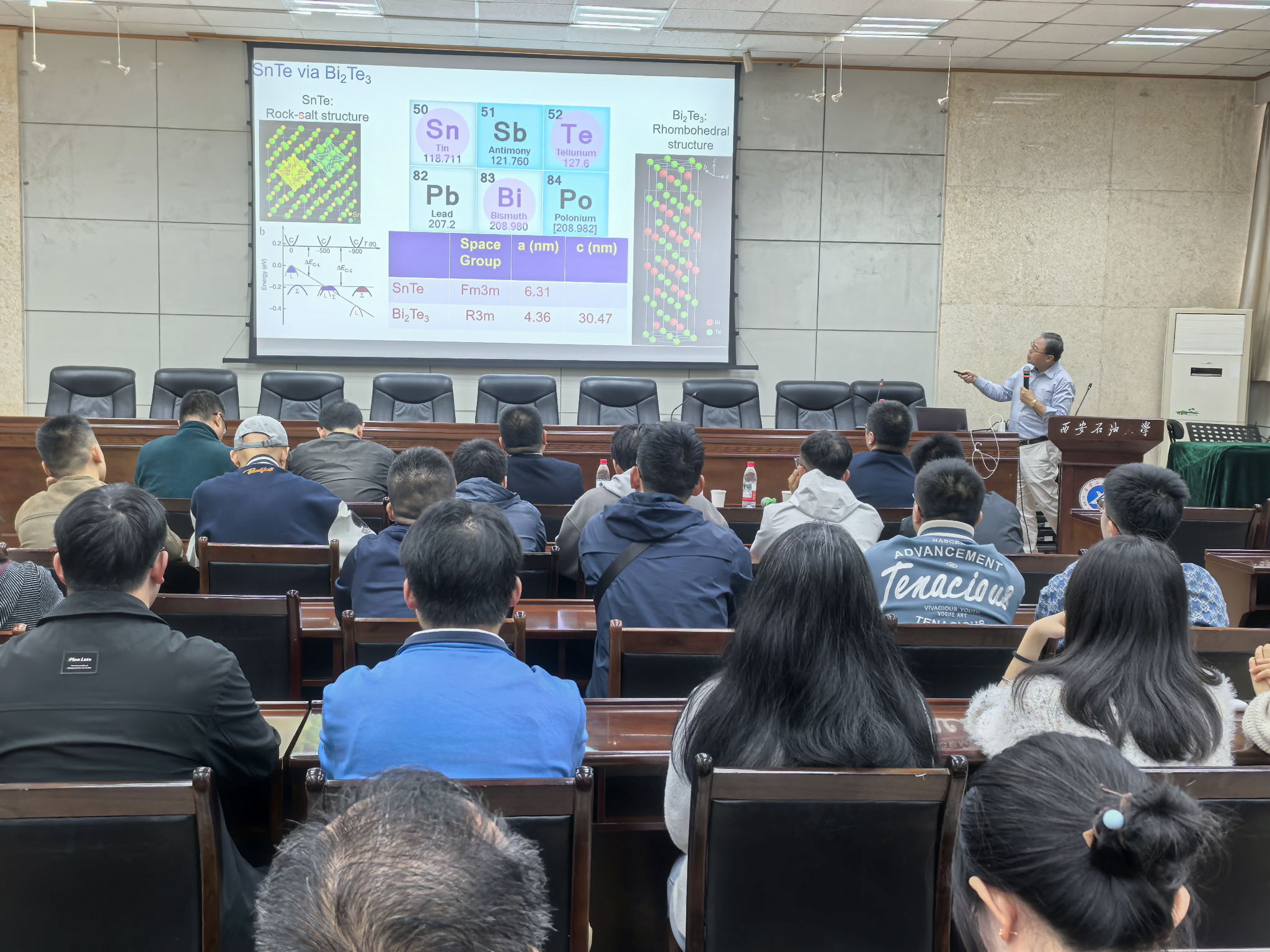师生作了《先进电子显微学在纳米材料中的应用及Nanoscale,Nanoscale Advance期刊介绍》的学术报告。他结合自身近40年的研究实践,深入浅出地介绍了透射电子显微镜、原位电子显微技术等尖端表征手段的原理与发展,分享了其团队通过先进电子显微镜技术在低维纳米材料形态、微结构和化学特性方面取得的研究成果。并就“透射电镜(TEM)操作”“国际交流合作”等问题与现场师生进行互动。