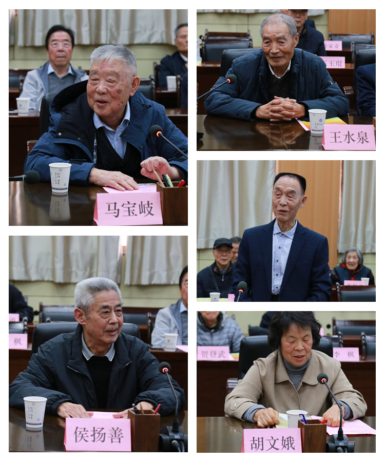 领导与老寿星代表合影留念。组织部、人事处、教务处、后勤处、离退休工作处、校医院等单位负责人参加会议。