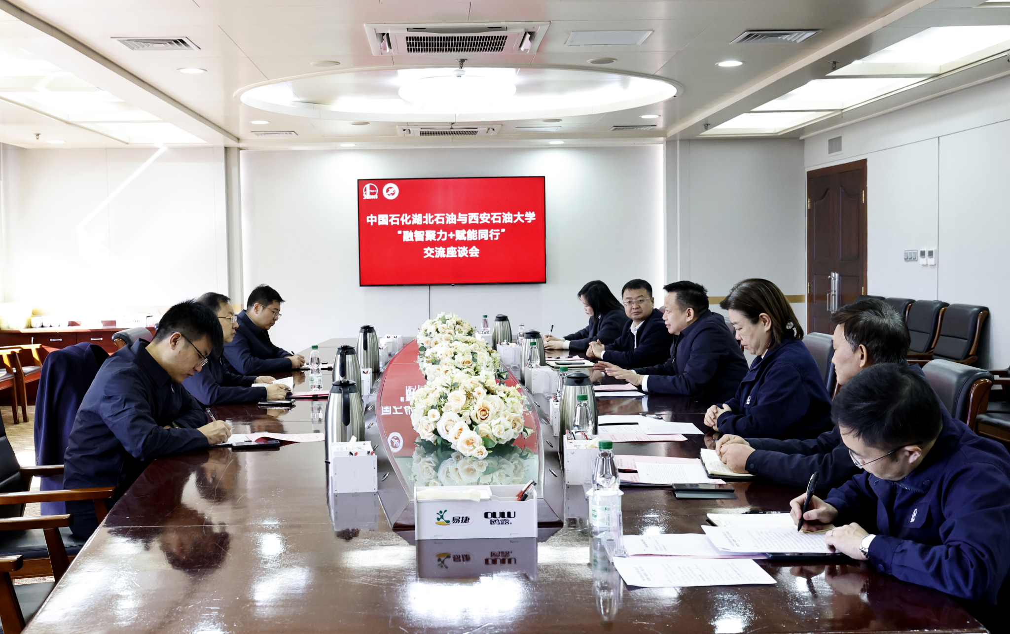 18日上午,种宇宏一行与中石化湖北石油公司党委委员、副总经理张军,副总政工师、党委组织部(人力资源部)部长任莉,武汉分公司党委书记、经理张博峰及相关部门负责同志座谈交流。