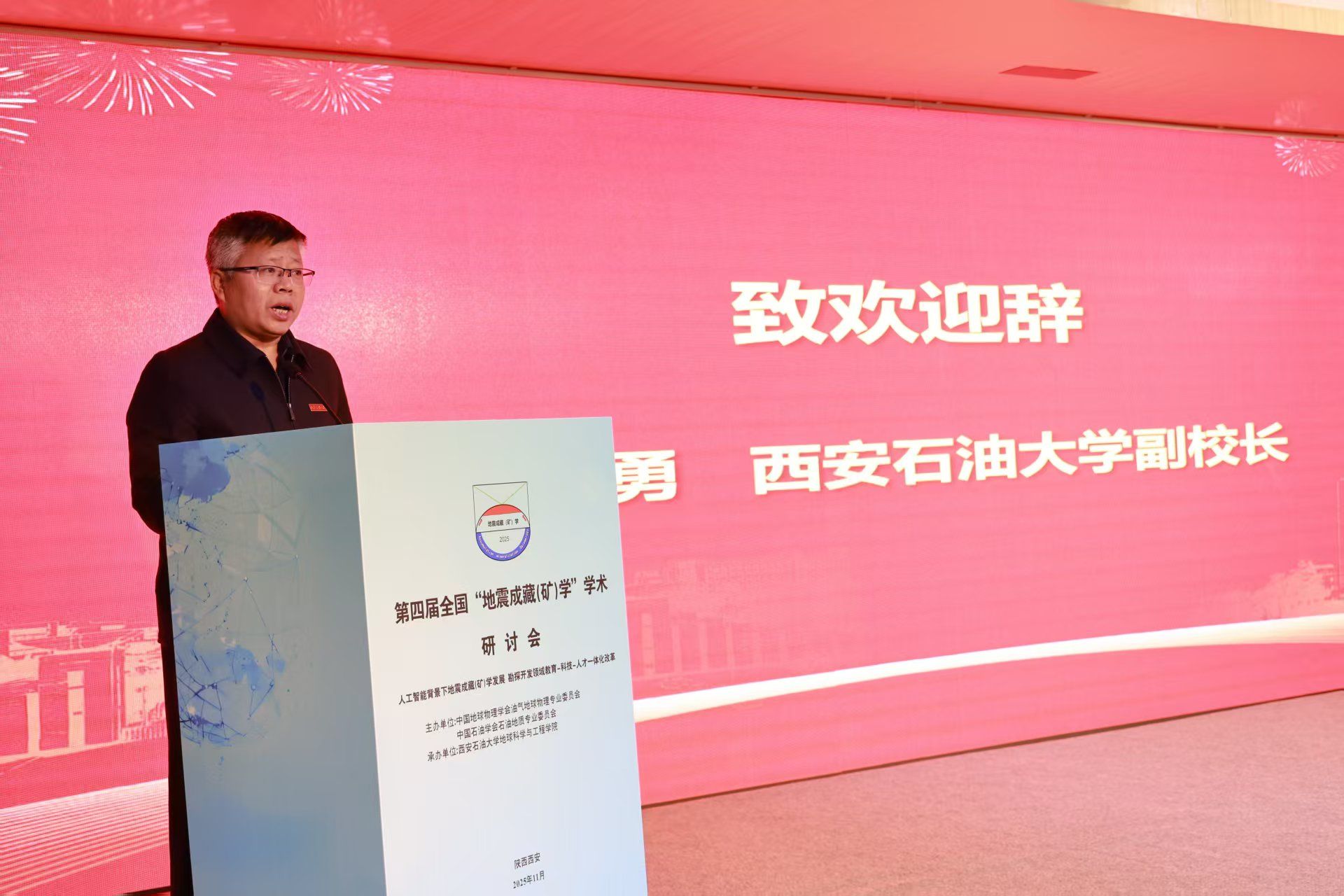 副校长张骁勇代表会议承办单位向与会嘉宾表示热烈欢迎,并表示,地震成藏(矿)学作为一门融合了现代油气成藏(成矿)理论与先进地球物理技术的新兴交叉学科,正凭借其独特的技术优势与理论价值,成为破解复杂地质条件下能源勘探难题的关键力量,为行业高质量发展提供了重要支撑。面对能源安全新形势,推动地震成藏(矿)学与人工智能等前沿技术融合,是服务国家战略需求的必然选择。