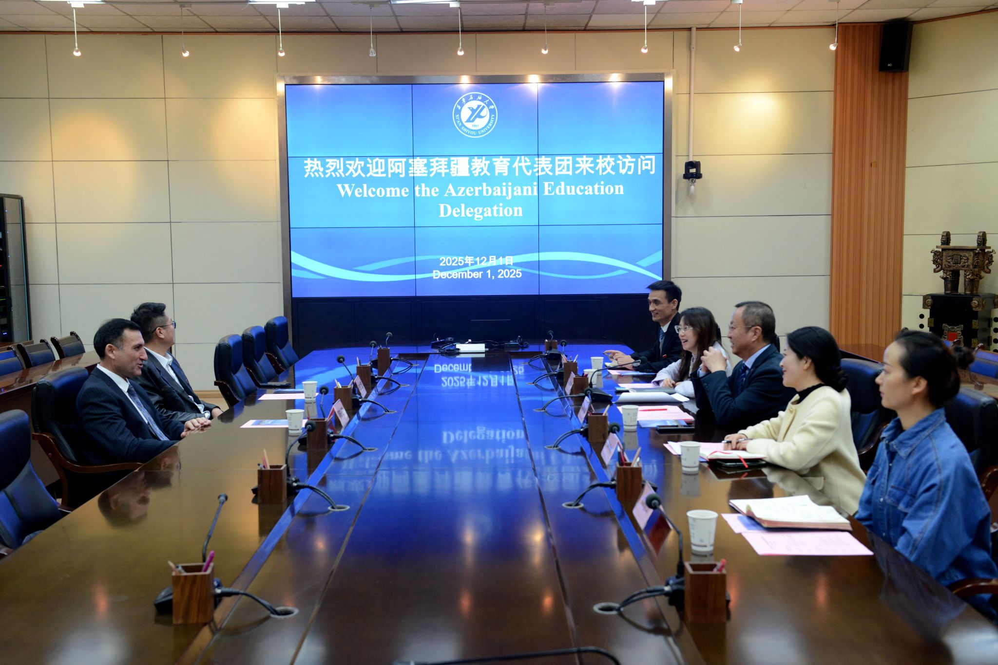的热情接待表示感谢,高度肯定了两校在过往合作中取得的丰硕成果,分享了阿塞拜疆在能源教育领域的发展经验与合作愿景。他表示,共建“一带一路”倡议为中阿高校合作搭建了重要平台,希望以此次访问为契机,进一步推动两国高校在学术交流、师生互访等方面的务实合作,共同为能源领域人才培养贡献力量。