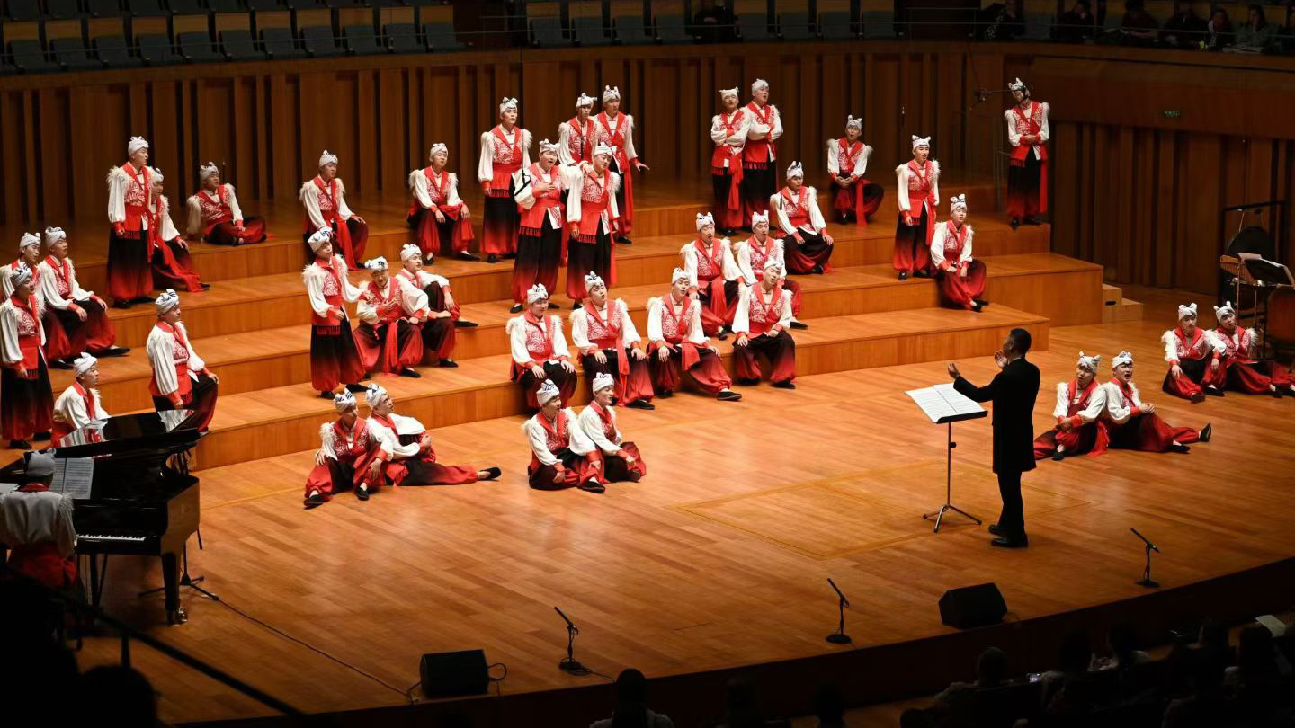 合唱团以陕北民歌这一国家级非物质文化遗产为核心,通过现代合唱艺术语汇,先后合唱了《黄河船夫曲》《走西口》《神仙挡不住人想人》等具有鲜明地域特色十首歌曲,彰显了陕北民歌的原始生命力与文化深度,展现了传统民歌与现代编创的相映生辉,实现了非遗的“活态传承”。作为整场演出的点睛之笔,承载了几代石油人记忆的经典作品《我为祖国献石油(新编》》通过合唱艺术的重新演绎,焕发出新的生命力。当熟悉的旋律在国家大剧院音乐厅回荡,高亢的信天游与铿锵的石油赞歌交织共鸣,既彰显西北文化的雄浑气魄、石油文化的奉献底色与能源报国的赤子情怀,更是德州扑克