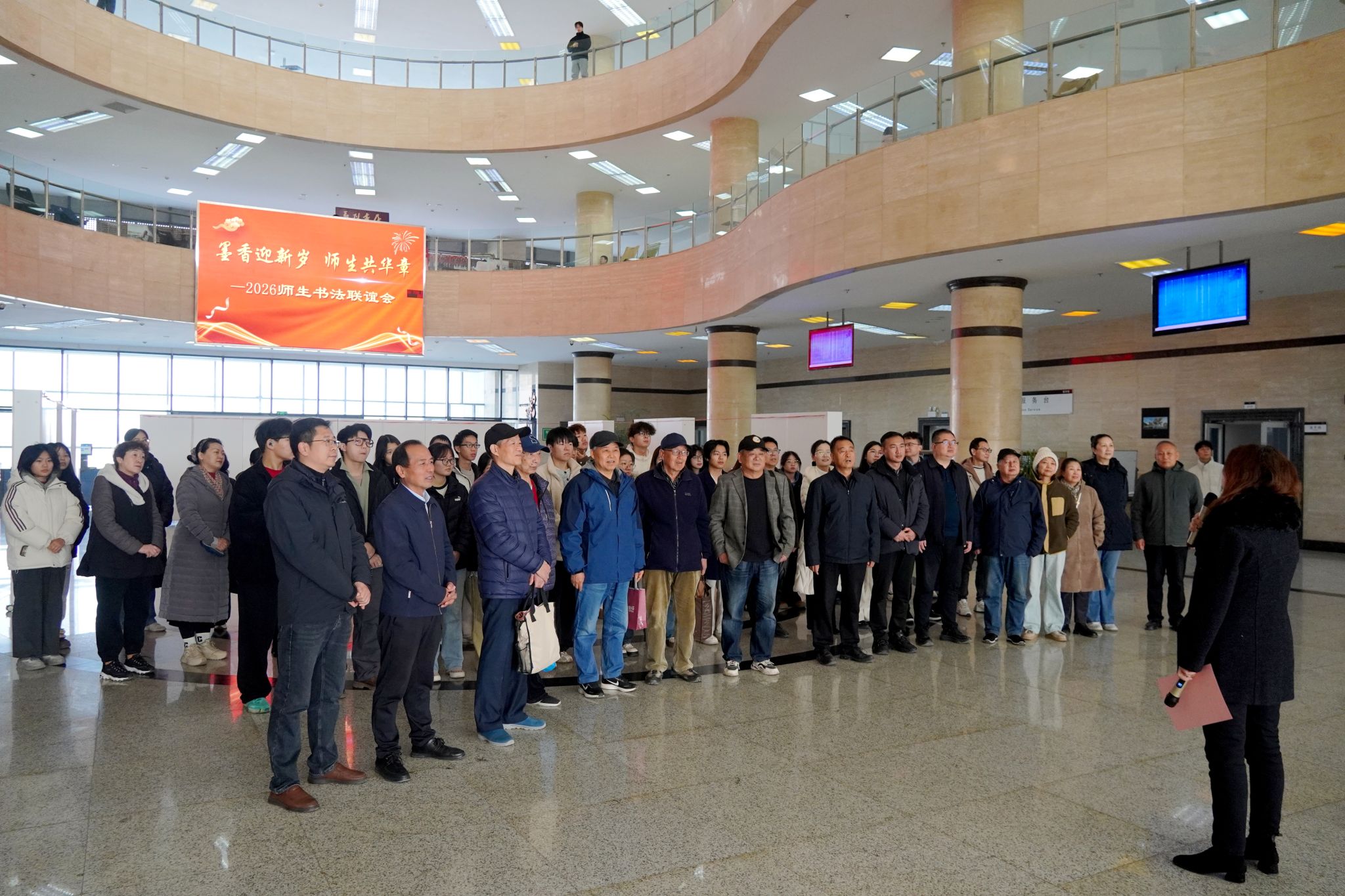 12月18日上午,“墨香迎新岁师生共华章”2026迎元旦师生书法联谊会在鄠邑校区图书馆举行,此次活动由图书馆、离退休工作处、人文学院、大学生书法协会联合举办。校党委副书记程永清出席活动并致辞,相关职能部门和院(系)负责人、校老年书画协会和退休老教师代表应邀出席,德州扑克