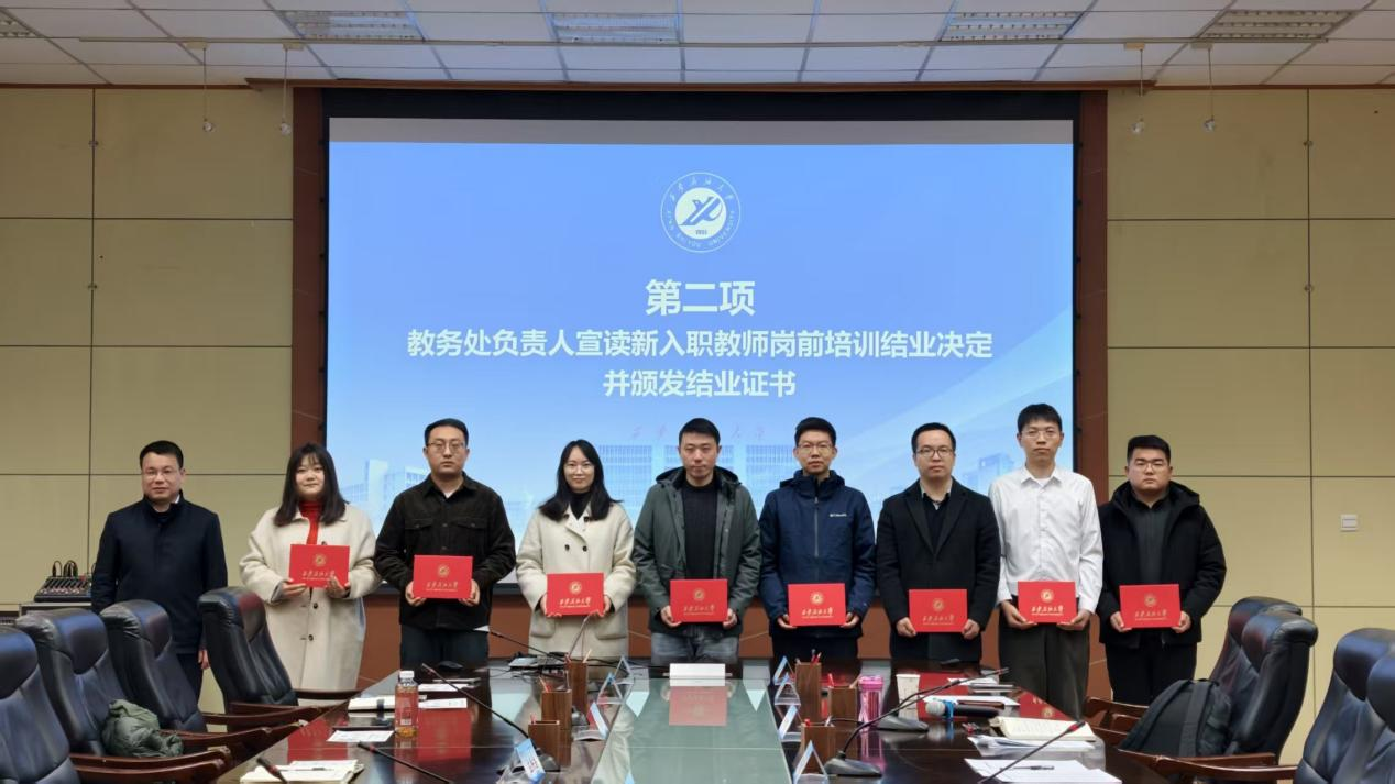 教务处副处长陈国祥宣读了《关于准予李赟等53名新入职教师岗前培训结业的决定》,为新入职教师代表颁发了结业证书。