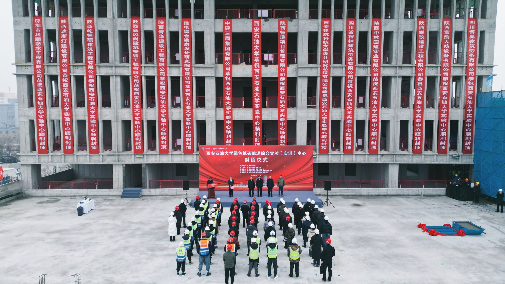 绿色低碳能源综合实验(实训)中心项目(以下简称“绿色低碳楼项目”)主体结构封顶仪式在鄠邑校区顺利举行。校党委书记常江,校长王进富,德州扑克