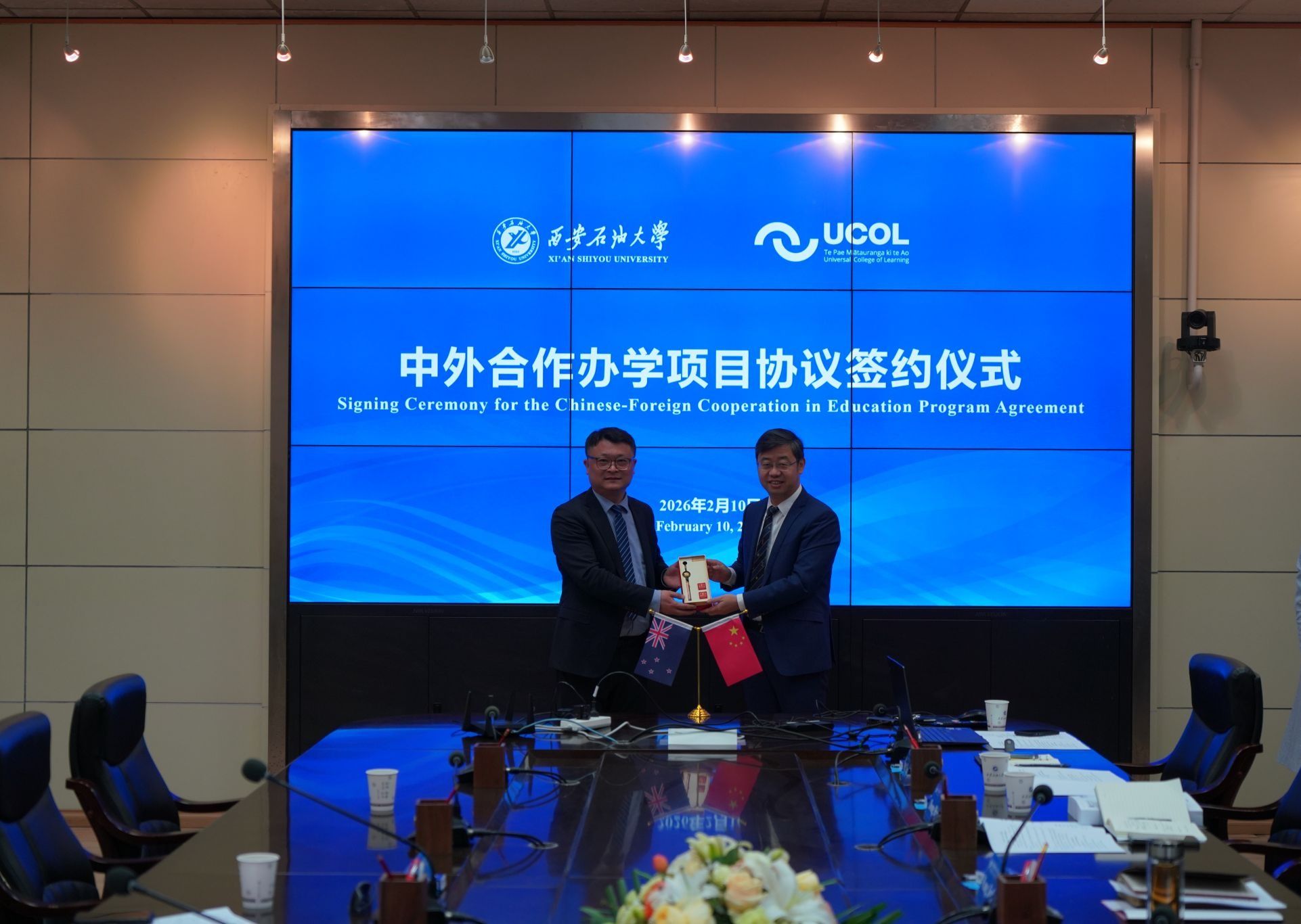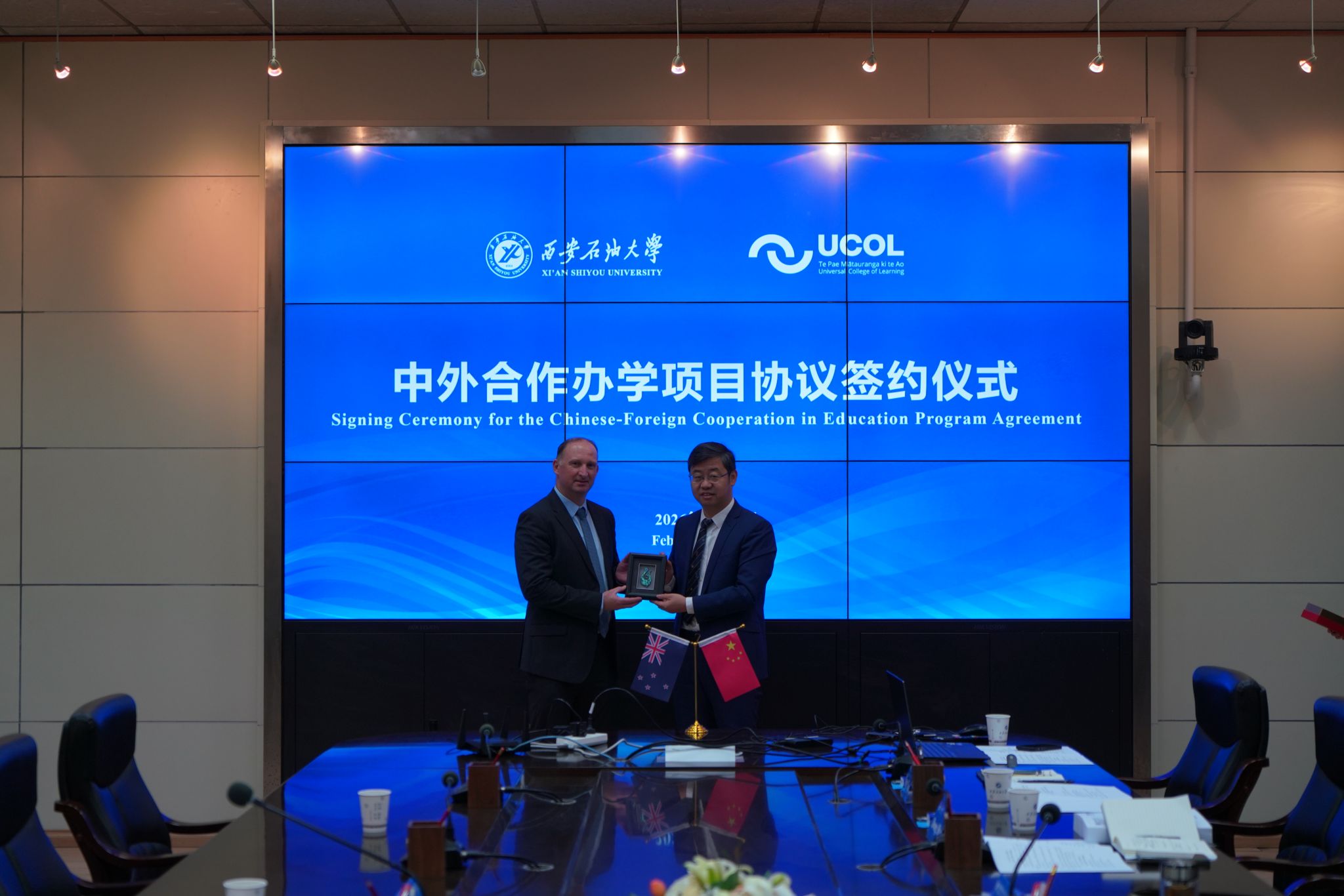 中外合作办学协议签约仪式在雁塔校区会议中心第二会议室成功举行。仪式采用线上线下相结合的形式举行,新西兰国立联合理工德州扑克