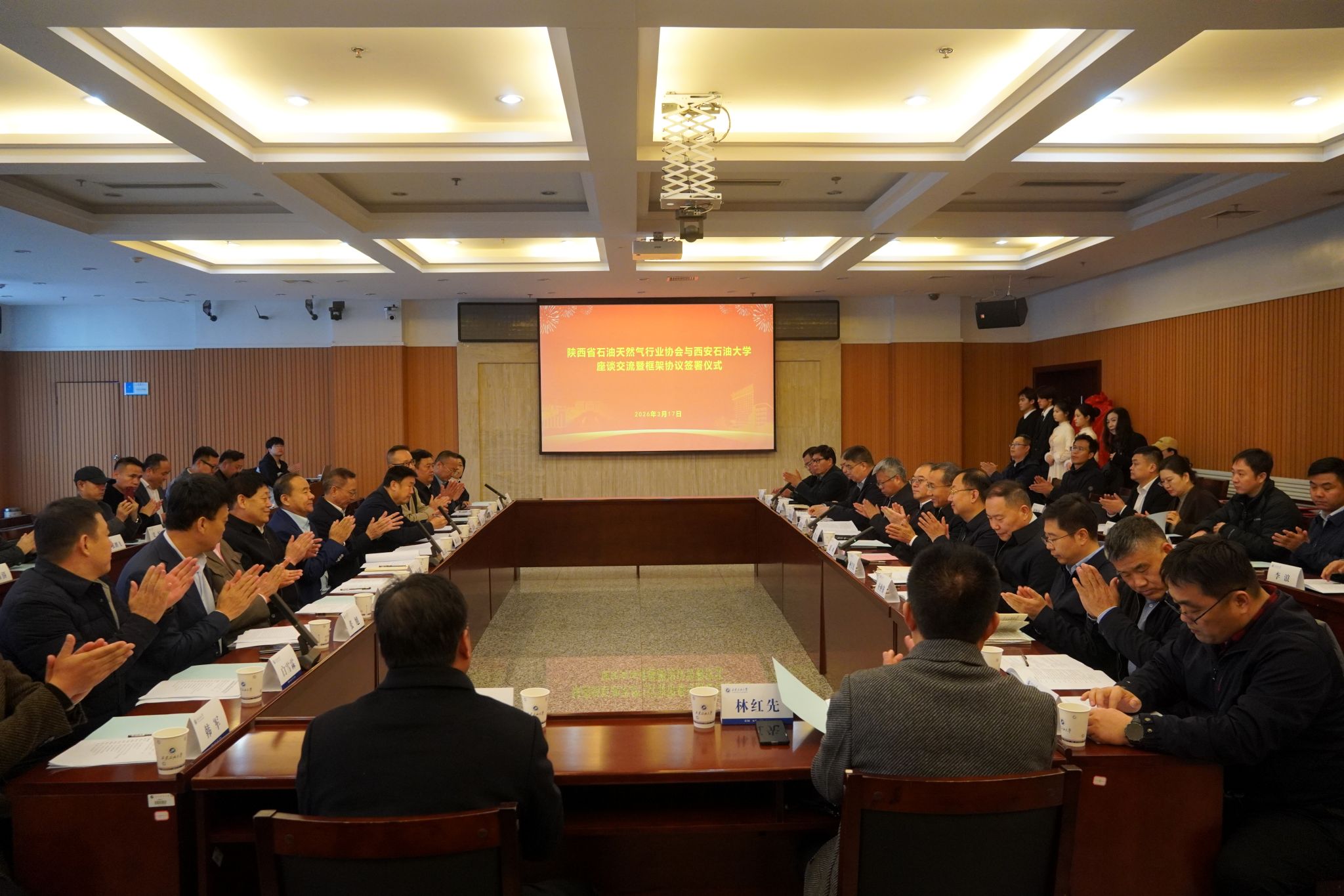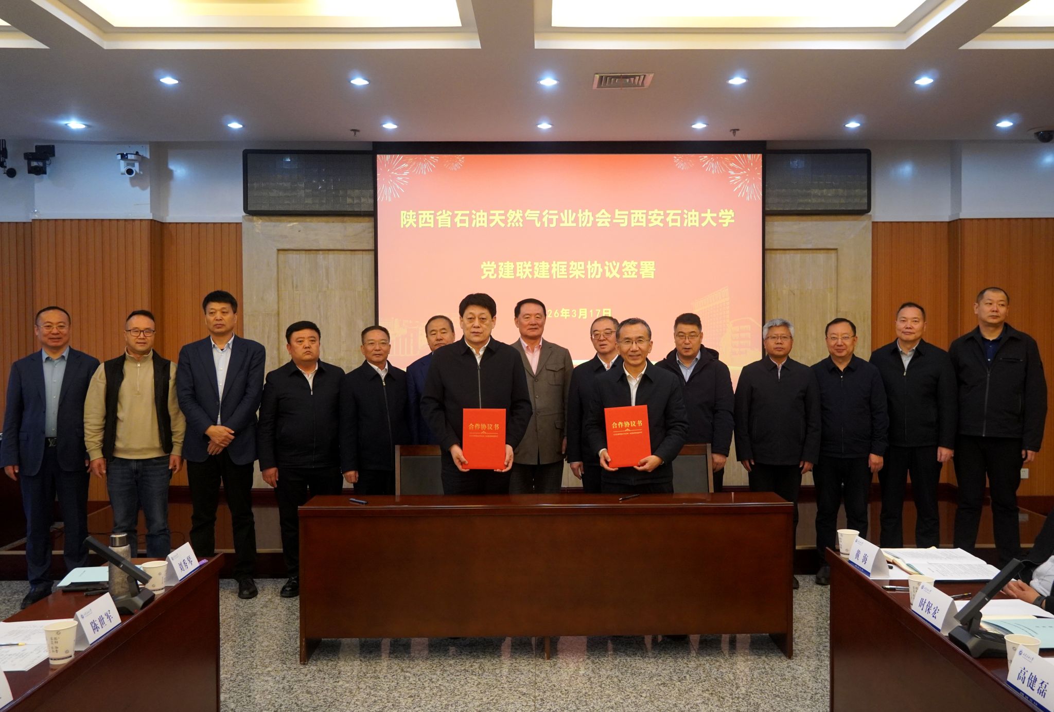 与陕西省石油天然气行业协会(以下简称“协会”)在鄠邑校区开展交流座谈,并签署《战略合作框架协议》与《党组织联建共建框架协议》。协会会长魏云章、党建总顾问魏文章、党支部书记赵占明,德州扑克