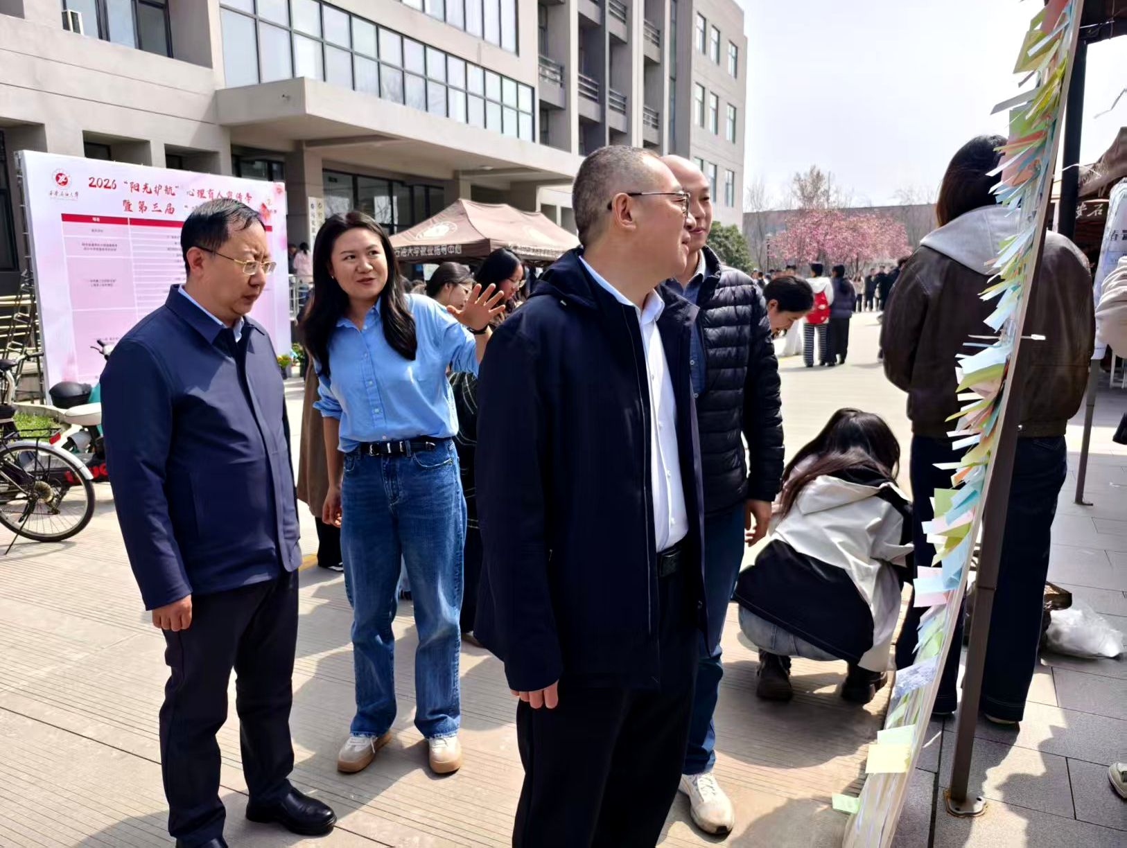 2026年“阳光护航”心理育人宣传季暨第三届“油缘会”在鄠邑校区崇文楼西侧广场顺利举行。本次活动以“五育一身 融合育心”为主题,吸引全校500余名师生踊跃参与。校党委书记常江、校长王进富、校党委副书记张木、副校长种宇宏出席活动。本次活动由学生工作部(处)、学生心理成长指导中心主办,党委宣传部、党委保卫部、团委、教务部、信息化建设与管理处、研究生工作部、后勤处、各院(系)、校医院、心理委员联合协会、大学生心理协会共同协办。
