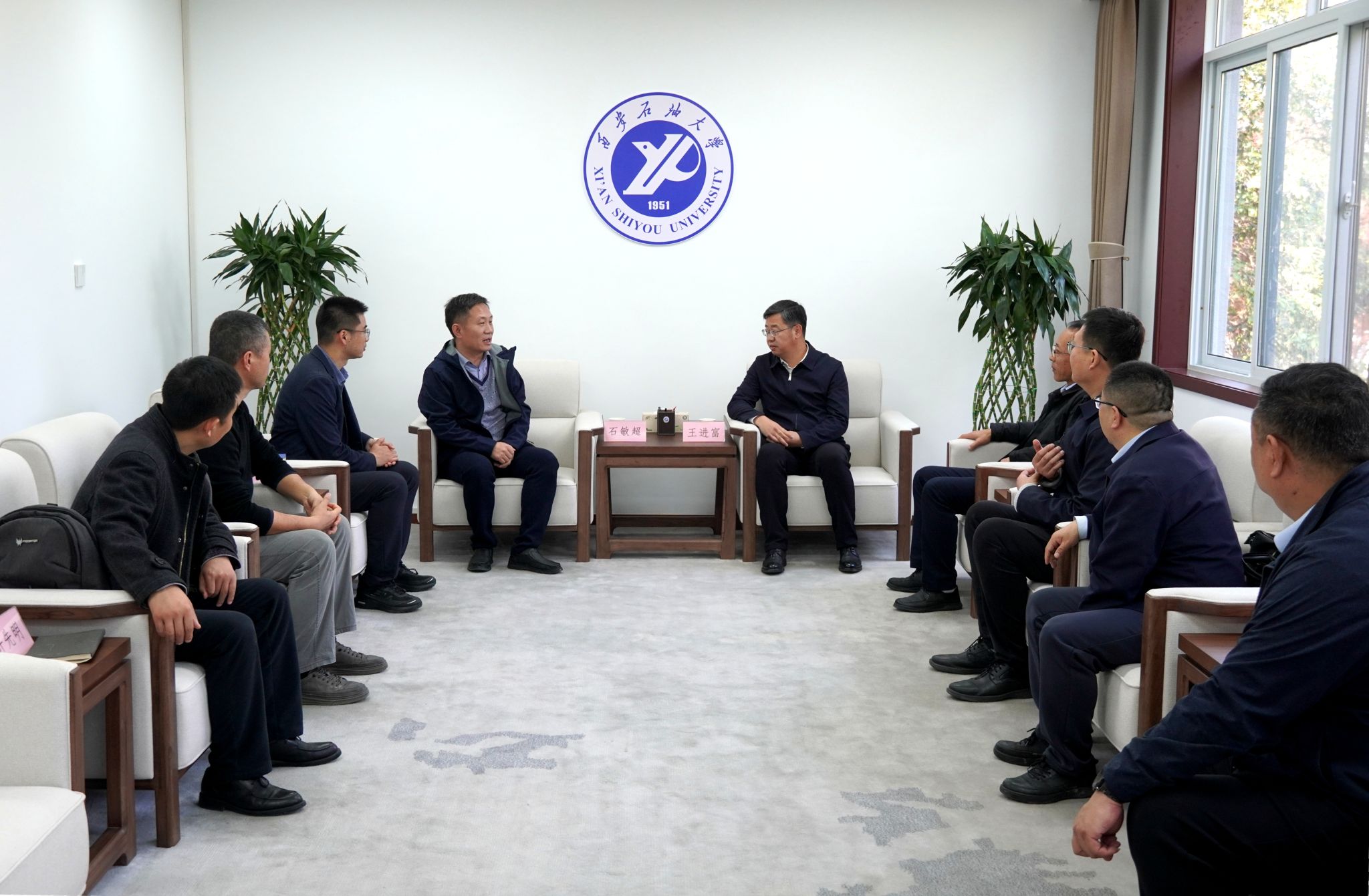 交流走访,会议在鄠邑校区第三会议室举行。座谈会前,校长王进富在贵宾室亲切会见石敏超一行。副校长张君涛出席座谈会,会议由教务处处长张益主持。