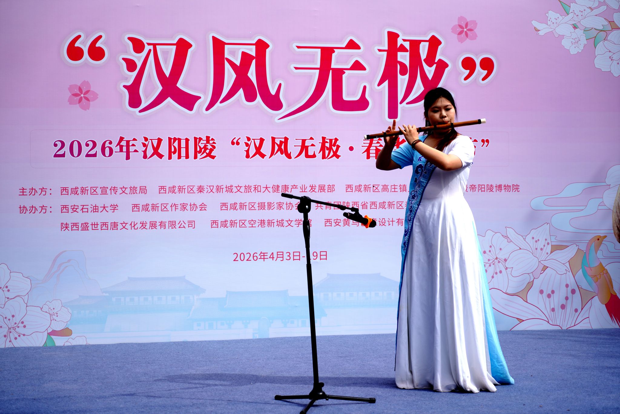4月3日上午,2026年“汉风无极”春华艺术展演系列活动在汉景帝阳陵博物院樱花林正式开幕。德州扑克