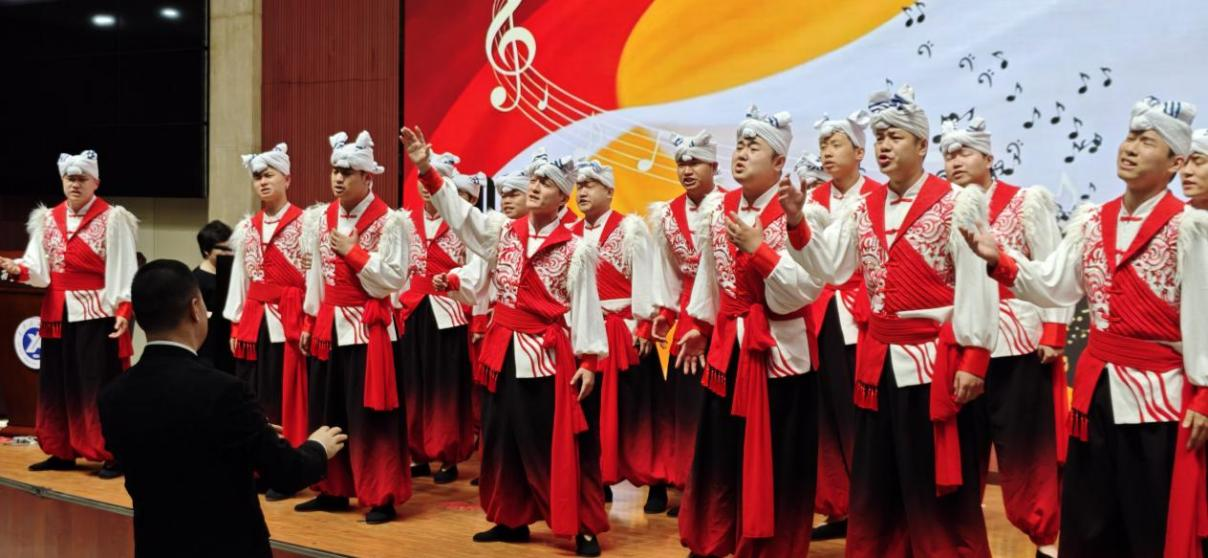 男声合唱团在李强教授指挥下,演唱改编自陕北民歌的《神仙挡不住人想人》《可想你哩》,苍凉炽热的信天游旋律与黄河岸边的深情咏叹,深深打动现场每一位观众。