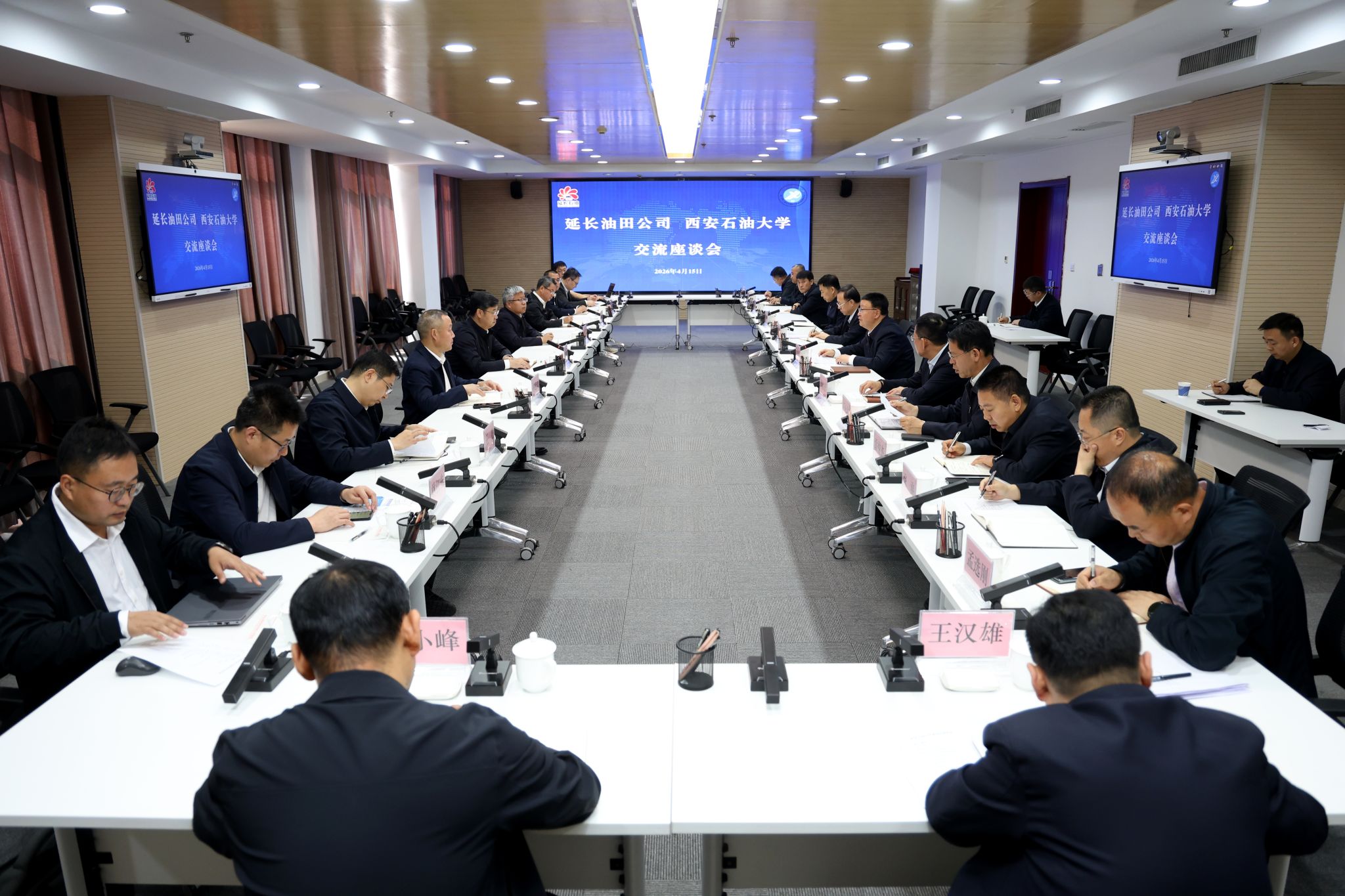 4月15日,校长王进富带队赴延长油田股份有限公司围绕油气资源高效开发、能源高效利用、技术联合研发、实验室共建、人才供需、员工培训等事宜进行座谈交流。副校长张骁勇陪同走访。延长油田股份有限公司党委书记、董事长高振东,党委副书记、总经理贺建宏,党委副书记张斌,总工程师王永东,总地质师刘雪峰出席座谈会,会议由高振东主持。