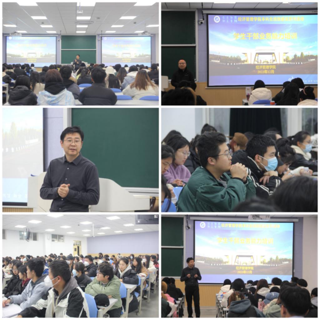 良好学风的带头人,是校园文化建设的推动者。学生干部应对自己高标准、严要求,不断提升自身的综合素质。他对参加培训的学生干部提出四点希望和要求:一要坚持思想引领。着力提高思想政治素质和理论素养,树立坚定的理想信念,用奋斗点亮青春的底色,成就自我;二要主动担当作为。学生干部应不断提高执行力、交际能力、组织管理和随机应变的基本能力,发扬实干精神,做一个既可以出色完成专业学习和各项工作任务、又能适应时代发展大胆创新的学生干部;三要树立服务意识。正确认识做为一名学生干部的责任,真诚地关心体贴同学,及时汇报、解决他们在学习和生活中的困难,做好老师和同学之间的沟通桥梁;四要明确自身定位。树立大局观念,注重自身能力素质和业务素质的培养,不断提高专业素质和服务水平,全方位学习,综合发展。
