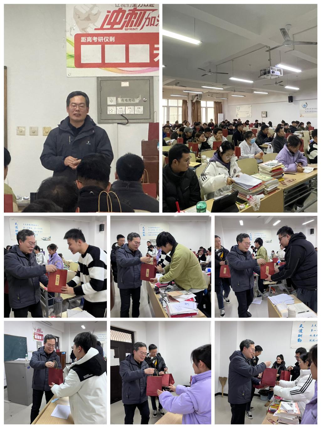 考研学子发放“暖心加油包”,并送上温暖祝福。