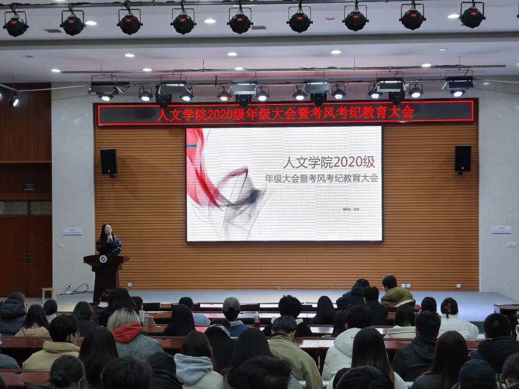 于12月14日在经管人文楼118召开了2020级年级大会暨考风考纪教育大会,会议由辅导员樊煜主持,2020级全体本科生参加。