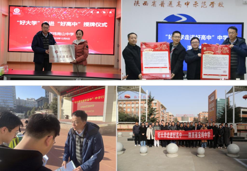 12月7日上午,在宝鸡市石油中学,王成和张伟两位副校长对大学老师的到来表示热烈欢迎,在讨论了高招工作中高中和大学合作意向以及授牌和优秀毕业生考研喜报后,工作组在该校体育场对高三学生开展招生宣传工作,并发放招生宣传资料。在宝鸡金台中学,首先校内对高三学生进行招生宣传,答疑解惑,发放招生宣传资料,再和各高校一起与校方座谈,呈送今年录取的优秀学生和学生考研的喜报,高效完成宝鸡市的招生宣传走访、喜报呈送及优秀生源基地挂牌工作。这次宝鸡之行新增优秀生源基地1个,在5所德州扑克