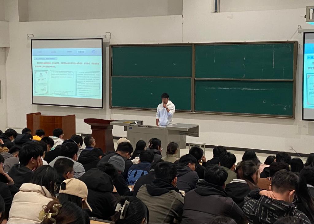 于12月5日在开物楼115教室举办研究生国家奖学金获得者学习经验交流分享会。石工研2101接叶楠、石工研2201刘勇两位研究生国家奖学金获得者担任主讲。研究生辅导员宋兴淼和研2023级全体学生参加会议。会议由石工研2023级辅导员黄景鹏主持。
