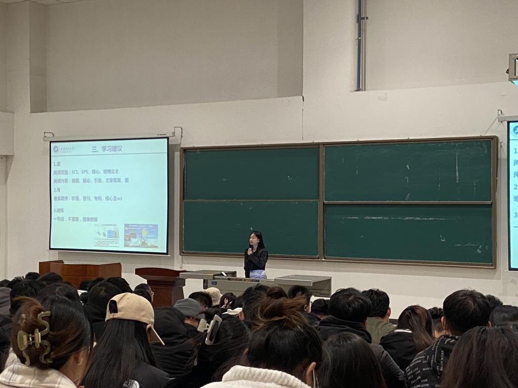 随后,接叶楠同学从个人成绩、学术成果、科研项目和综合能力以及学习建议五个方面进行经历和经验分享,强调要端正学习态度,树立正确的学习规划,不仅要专注于学习专业课程,还要积极参加各种学科比赛,在比赛中不断开拓视野,积累经验,在竞争中成长,激发潜力。她还建议同学们在论文的发表过程中,要从读、写、精炼三个方向去下功夫。刘勇同学从课程学习、科研竞赛和社会实践三个方面分享了获得国奖的经验。他谈到,课程学习是重中之重,是从事科学研究的基础,千万不要挂科。他还号召同学们积极参加石工、储运和海工大赛,搭建良好的团队,敢于创新。