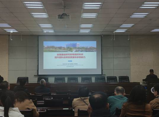 院长闫茂德教授,在雁塔校区第三会议室作“加强基础研究与有组织科研,提升项目质量和承担能力”辅导讲座,讲座由副院长高国旺主持。