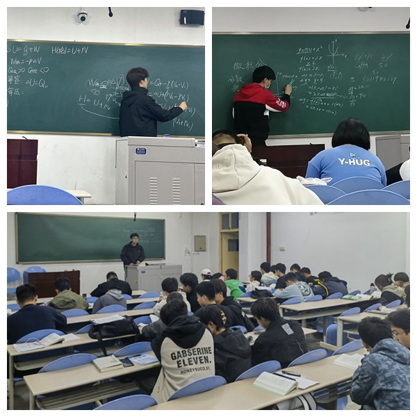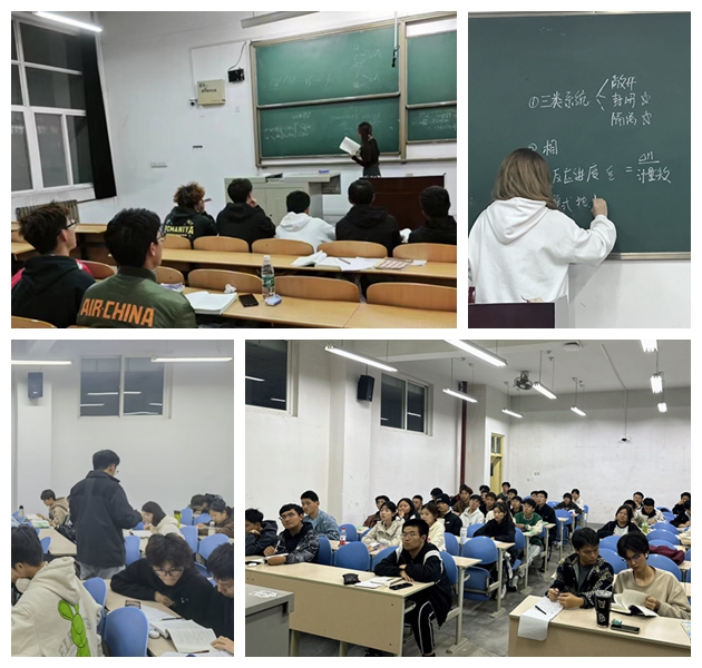 在晚自习环节中,能动2201班张潆月同学从教材解析、方法指点和课外延展3个方面向同学们讲授了高数的相关知识,并耐心解答了同学们的疑问。同时,她还分享了相关的网络课程和学习资料,对同学们的学业规划提出了宝贵的建议。能科2101班李新哲同学以普通化学课后习题和考试真题为切入点,引导同学们理解书本中的复杂概念并分享了自己的学习技巧。能材2102班巩瑞翔同学针对高等数学中同学们共同关注的求导问题进行了重点讲解,传授同学们该如何灵活运用公式,归纳总结题目类型,同时讲解相应类型题应如何寻找解题方法。能动2201班董代兵同学针对普通化学课程的重难点和考点内容,采用授课讲解和辅导答疑相结合的方式,带领同学们分章节进行梳理,查缺补漏。帮扶过程中,各专业的课堂氛围良好,内容详实,同学们全程认真聆听,将要点进行详细记录,并积极向学长学姐进行提问,不断汲取知识,积累经验。