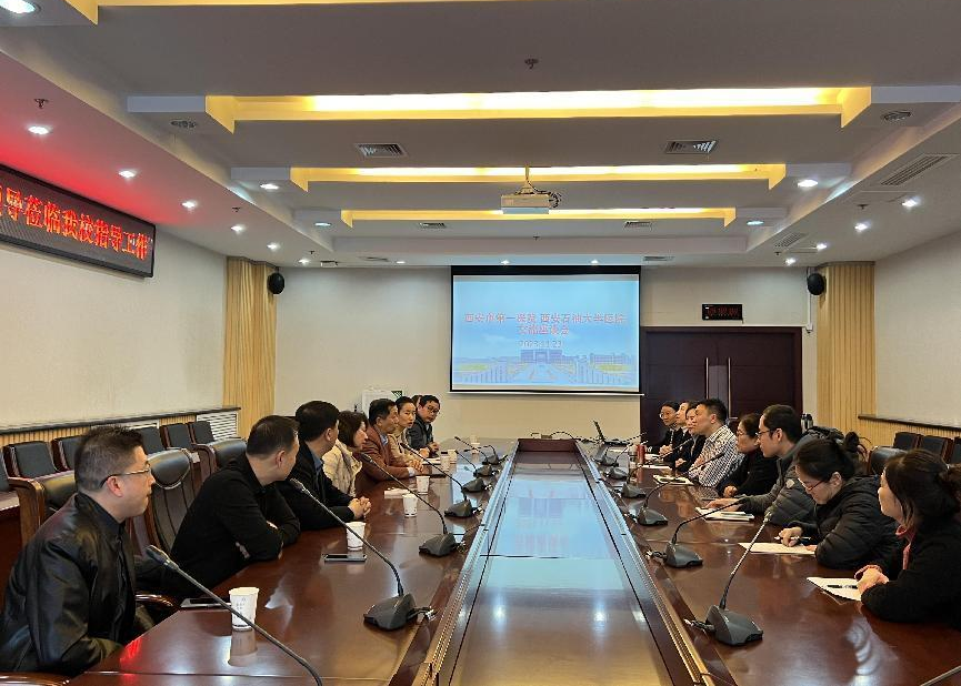 11月23日下午,西安市第一医院高新院区一行8人来校开展调研交流。座谈会在鄠邑校区第二会议室进行。双方医院部门主任及相关科室负责人参加会议。会议由校医院党支部书记刘胜勇主持。