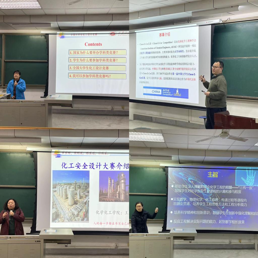 党委书记司马文龙、化工系部分学科竞赛指导教师刘菊荣、范峥、王进、唐璇分别主讲,由2021级辅导员曹勃和2021级全体本科生参与,化学工程系主任宋绍富教授主持。