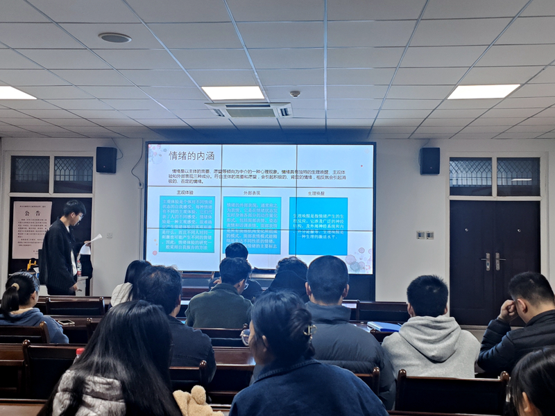 会议伊始,计类2206班邵文昊等几位同学结合自己实际情况,从自我认知、情绪调节、自我提升三个部分展开班会内容,通过心理健康知识问答、小组讨论、以及学生案例分析等环节,引导大学生重视心理健康教育,掌握心理健康相关知识。计类2209班吴佳杰等几位同学通过介绍心理疗愈的各种方式,帮助同学们缓解心理压力和学业压力,同时引入心理小游戏和趣味心理测试帮助学生心理健康成长,为其他心理委员开展心理自助和助人活动提供了思路和经验。最后,姚谦老师对参赛同学的汇报进行了点评,并分享了自己对于心理育人工作的认识和理解,帮助引导同学们更好地理解心理健康教育,增强班级心理委员做好心理健康教育工作的本领和能力。本次主题班会将遴选一名同学代表德州扑克