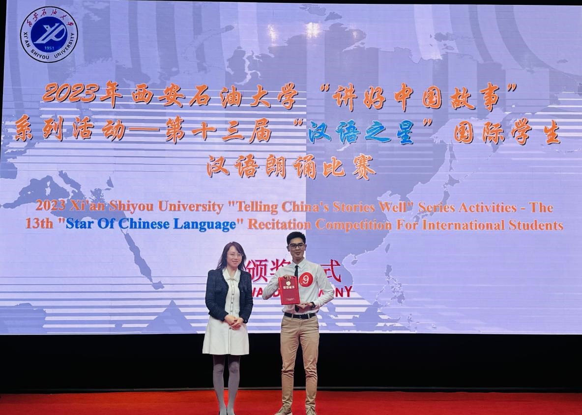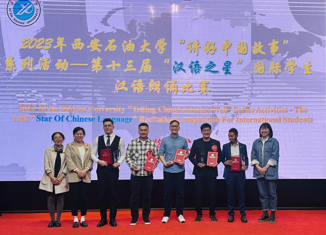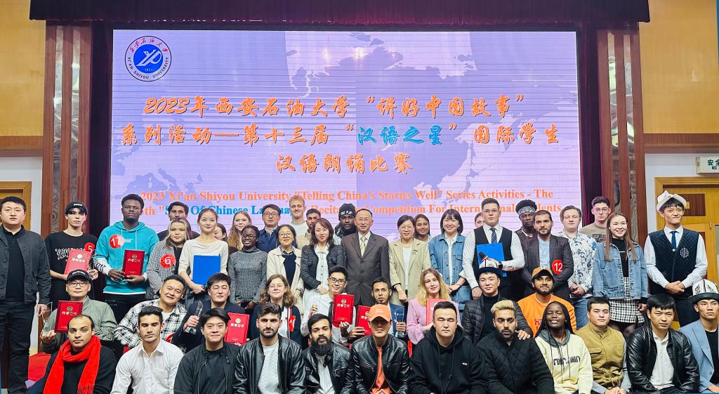 在雁塔校区学术报告厅举行“讲好中国故事”系列活动之2023年第十三届“汉语之星”国际学生汉语朗诵比赛。经初选,最终来自“一带一路”沿线14个国家的18组国际学生参加了比赛。