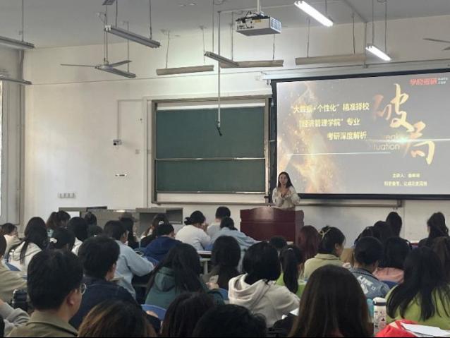 于11月1日在鄠邑校区博思楼102教室举办了“研途砥砺,筑梦未来”考研专题讲座。本次讲座由学府考研毋咪咪老师担任主讲,内容涵盖专业深度分析、专业就业前景及专业竞争格局、特色院校以及复习规划等方面,经济管理德州扑克