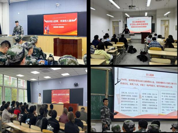 组织各年级各班级团支部通过朗诵、演讲、电影、交流研讨、分组发言等各种形式开展学习铁人精神暨铁人诞辰100周年纪念主题班团会。班会上,同学们以铁人精神为主线,结合自身实际,分别从个人、集体、思想建设、学风建设、团结协作等方面分享了心灵感悟以及下一步努力方向。班委们向同学们介绍了王进喜同志的生平事迹,结合自身谈了自己对铁人精神的理解和感悟,并号召大家向铁人学习,打造铁人式班集体,争做新时代铁人式大学生,在任何困难和挫折面前,都要保持坚定的信念和不屈不挠的斗志,并将铁人精神融入到自己的学习和生活中,坚持奋斗、勇往直前,为实现个人的理想和国家的繁荣贡献力量。同学们纷纷表示要刻苦努力,发扬铁人精神,真正将铁人精神融入班级建设和个人日常学习生活中。