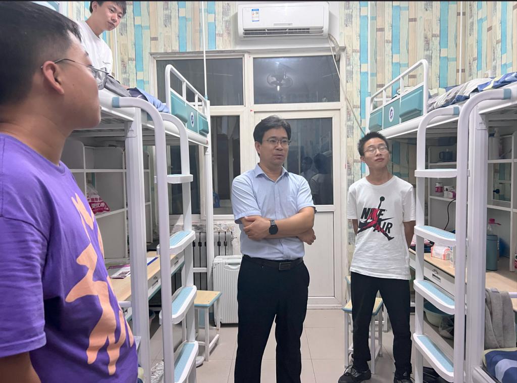 党委书记宋海洋、学生工作办公室主任马武军、2023级辅导员卢筱佳深入新生宿舍,详细了解新生的住宿和生活情况。在走访过程中,宋海洋与新生进行亲切交谈,从住宿饮食、生活习惯、发展规划等多方面深入了解学生情况,询问同学们的报到流程是否顺利,关心同学们的入住体验,并进行现场沟通解决,帮助同学们尽快适应新生活。宋海洋叮嘱新生与同学之间要相互关心,相互帮助,尽快调整好状态、适应大学新环境,以良好的状态迎接大学生活。