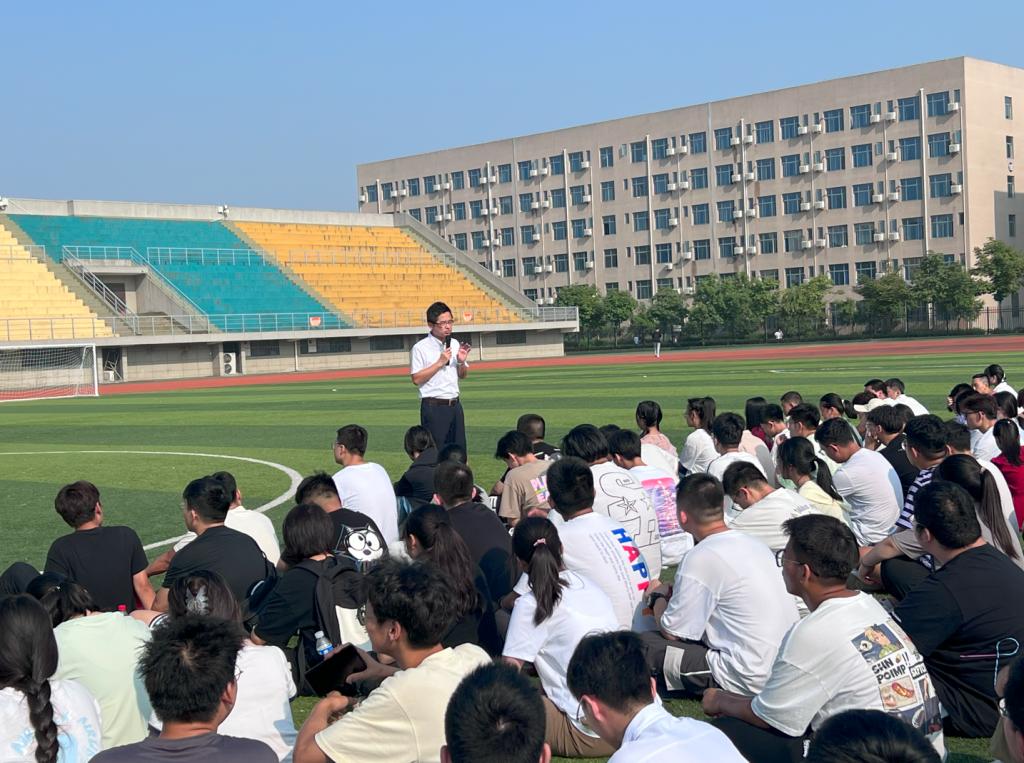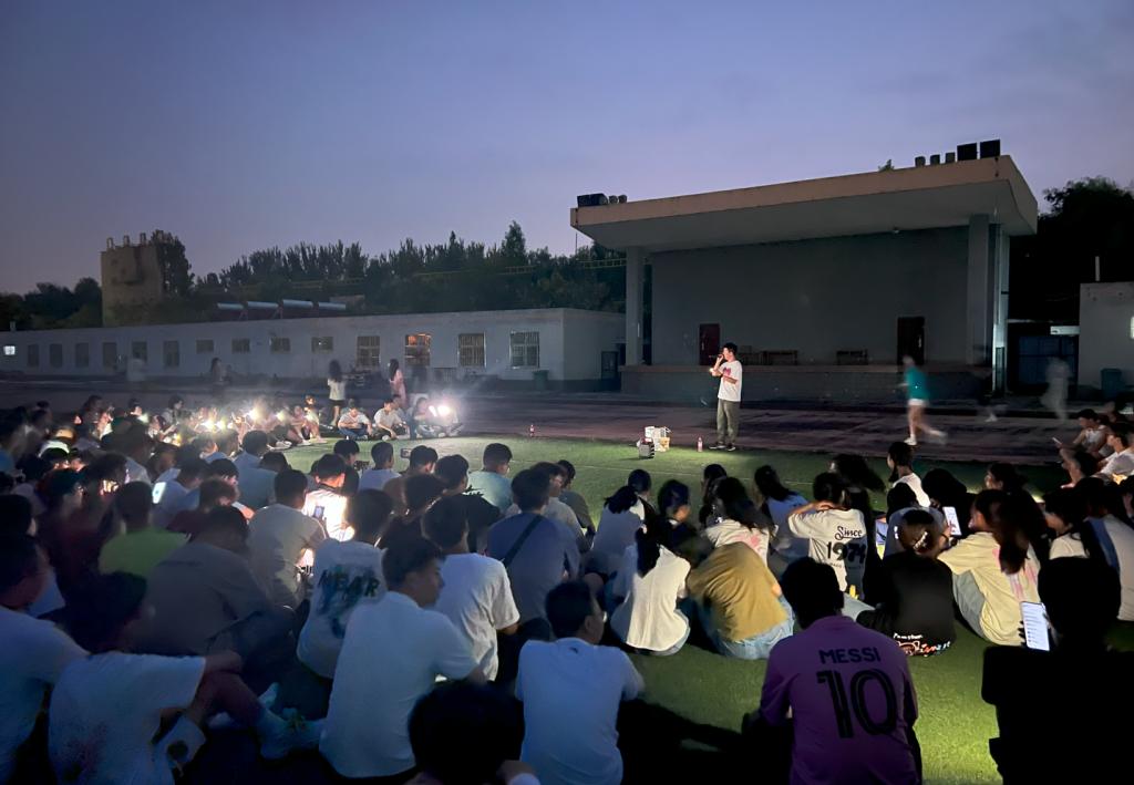 学生工作办公室主任马武军、辅导员卢筱佳与团委、学生会成员在鄠邑校区东区田径场组织开展了新生破冰活动,2023级全体同学参加。活动伊始,各班在德州扑克