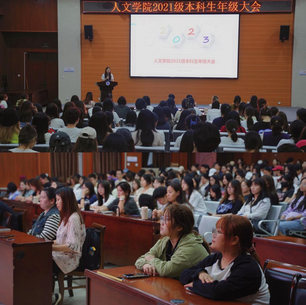 在鄠邑校区崇文楼就业指导中心多功能厅召开“启航新征程,共筑未来梦”2021级本科生年级大会。2021级全体学生参加本次大会,会议由2021级辅导员张馨元主持。