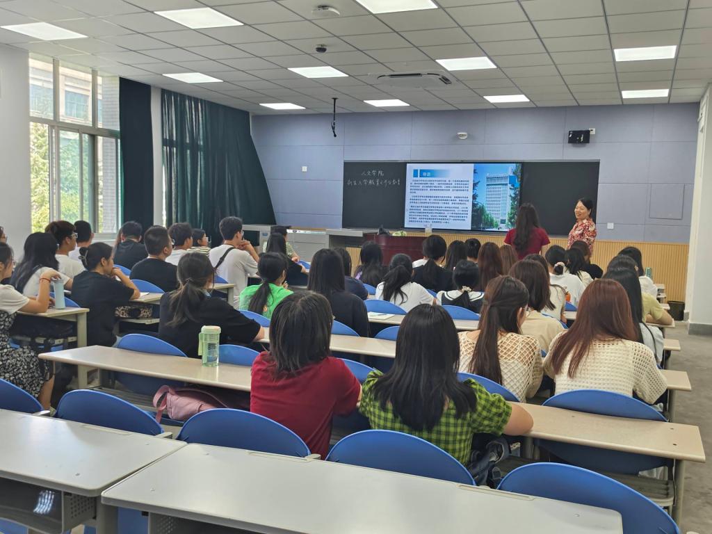 中文系主任王敬艳讲述了专业发展、特色和师资力量,并以“新文科·新中文”为主题指出,新时代呼唤创新型文科,新文科的建设要立足于新科技时代。她强调,新中文新在新的人才培养规格、新的研究对象和研究内容、新的研究方式。王慧指出写作、沟通、表达能力的重要性,鼓励新生积极参加学科竞赛,提高专业能力。她特别强调,要重视英语学习,为未来发展打好基础。张奕则以自身求学经历为例,分享求学经验,激励学生要加强语言文字能力的锻炼和培养。