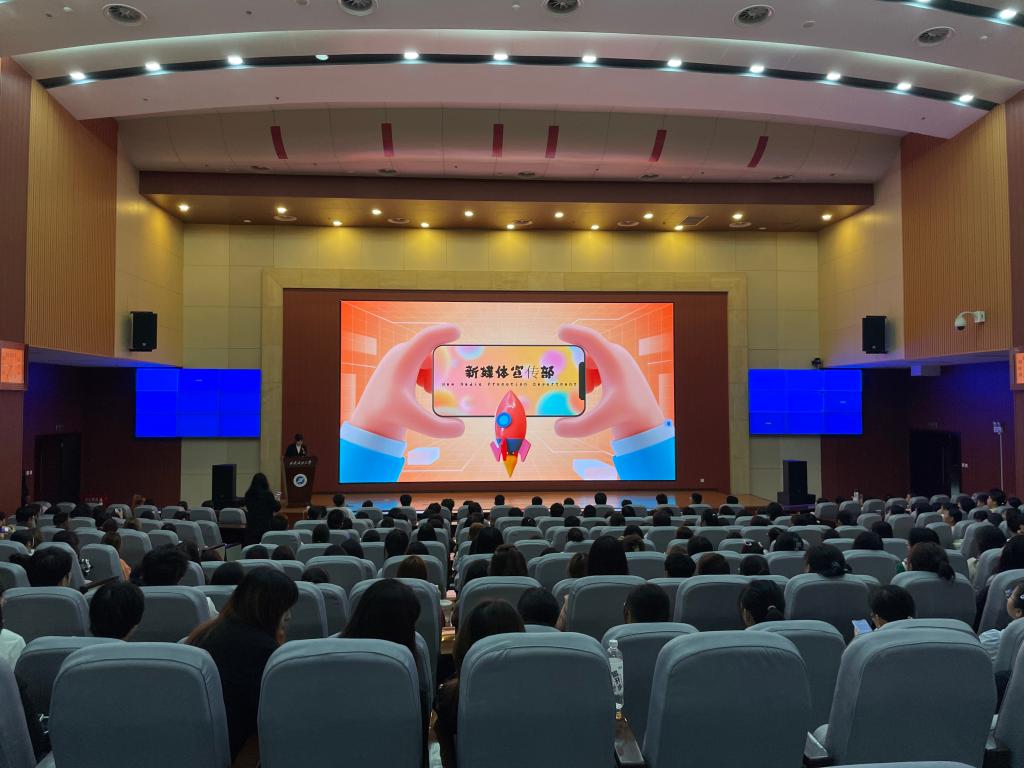 团委学生会在鄠邑校区弘石学术报告厅开讲新生入学教育第三讲——多彩大学生活暨团委学生会纳新宣传。