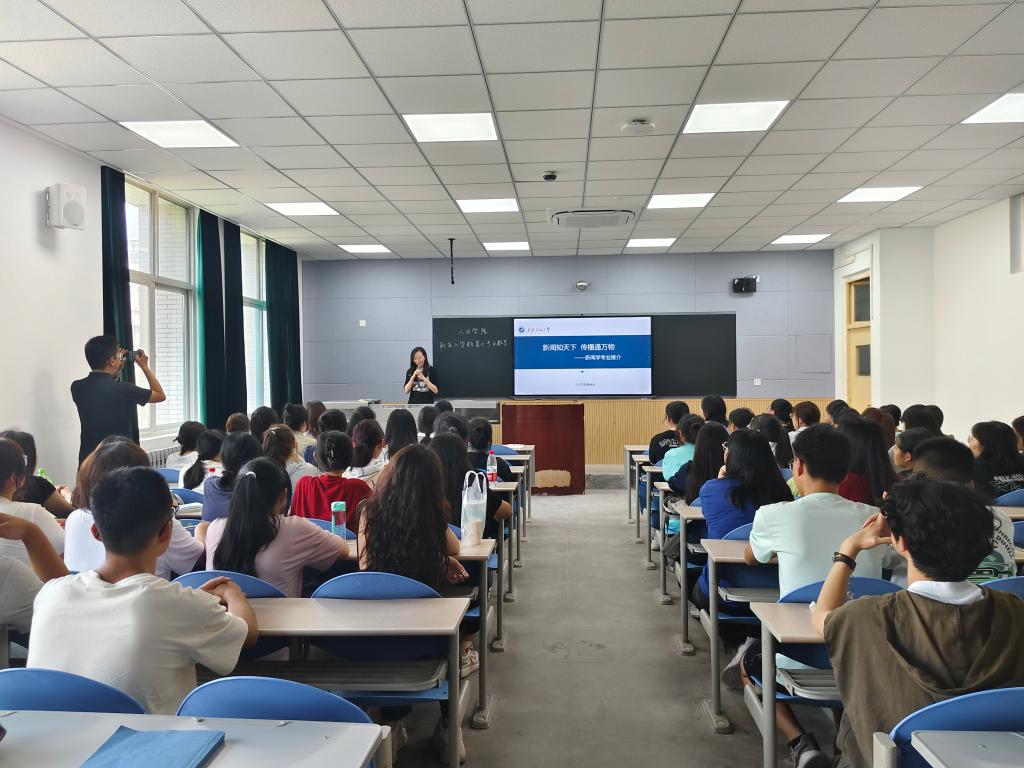 新闻系教师马可从专业课程方面介绍基础课程和需要掌握的专业能力。她嘱咐学生要有家国情怀,博览群书,扩展自己的视野,做一个合格的新闻人为社会发声。邓笑然从“新闻”两字入手,介绍了新闻学的概念与内涵,让学生快速了解专业。伏彦冰以往年新闻专业学生就业情况为例,强调考研和就业同等重要,鼓励新生在志向考研的过程中也要兼顾新时代就业前景,机遇失不再来,学会随机应变,为自己的未来负责。