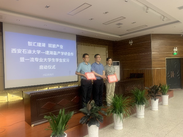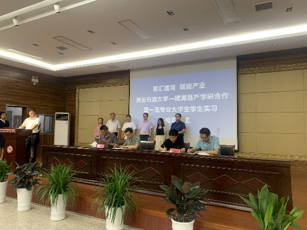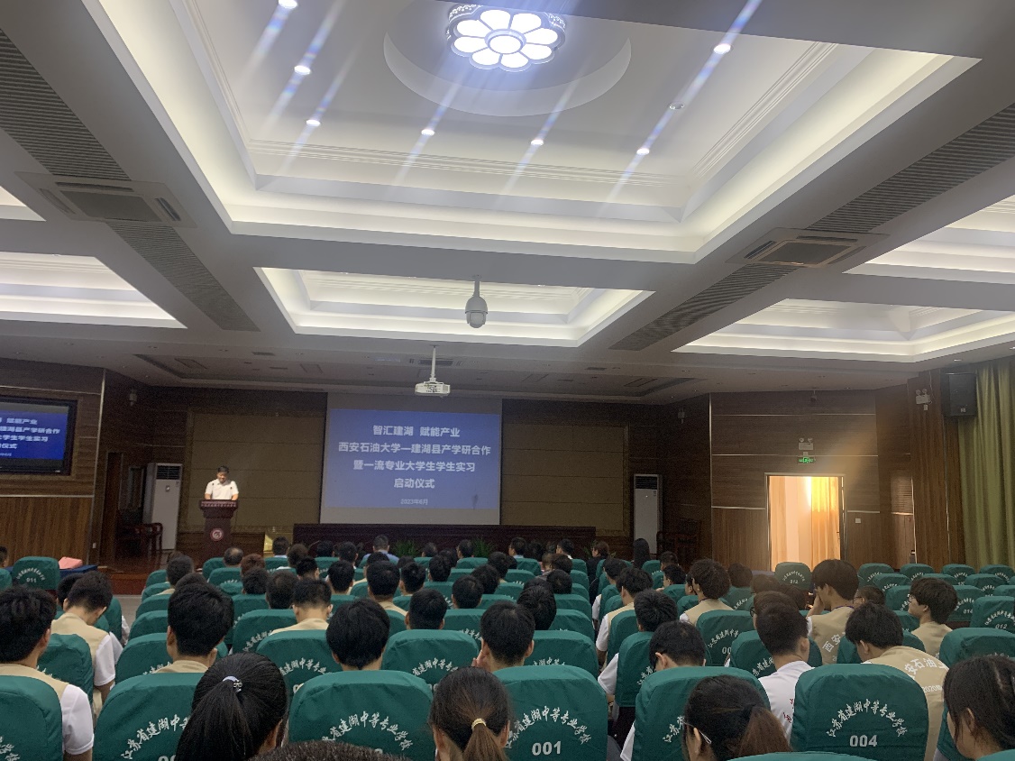 启动仪式上,与会人员共同观看了《建湖有戏》宣传片;吴伟芳和曾令群分别就建湖县引才政策和科技创新工作进行了推介宣讲,同时诚挚邀请西石大毕业生们到建湖就业创业;孙盘桧分别为蔡建文和林红先颁发了“引才大使”证书;蔡建文和林红先分别与盐城中威机械有限公司等10家企业签订了产学研合作协议并进行了大学生实习基地授牌;企业代表盐城中威机械有限公司董事长黄永中和实习生代表装备2001班张嘉豪同学分别发言。