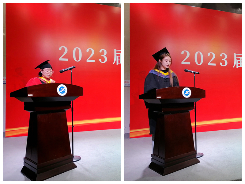 2023届毕业生代表宋紫欣同学在发言中向多年来给予辛勤教诲的老师致以衷心的感谢和崇高的敬意,她回首四年求学时光的珍贵瞬间,从军训、运动会、文艺晚会到大学四年种种成功的喜悦与失败的迷茫,那些与老师们、同学们相处的点点滴滴将是温暖未来岁月的宝贵财富。她表示,作为一名新时代的青年,将永远不忘母校的辛勤栽培,感恩母校的培育和老师的辛勤指导,并代表全体毕业生向母校保证,将谨记师长教诲,秉承“好学力行,自强不息”的校训,为祖国富强和民族复兴而不懈奋斗。