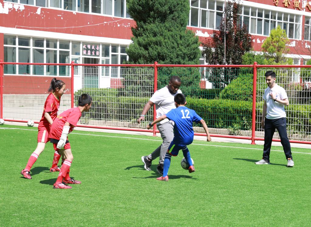 在直罗小学,留学生们为小学生们带来了有趣生动的英语口语课。实践教学活动是“感知中国”活动重要组成部分,在互动课堂上,小学生们与来自不同国家的留学生互动交流,来自马来西亚的咏翰分别用中文、英文、马来西亚语给小学生们教了生日祝福歌,来自哈萨克斯坦的小云用图画、猜谜游戏为小学生们上了一堂生动活泼的英语课。有趣的英语课堂激发了小学生学习英语的热情和浓厚的兴趣,课堂气氛热烈,同学们发言踊跃,一节课下来小学生们意犹未尽。英语课堂外,是以“传播快乐足球”为主题的足球互动活动,留学生与小学生们开展了一场足球友谊赛。场上,参赛队员们齐心协力,奋勇拼搏。带球、护球、传球、射球,动作娴熟,拼劲十足。就这样,初次来到直罗小学的留学生们感受到了当地的风土人情,并对接下来与孩子们的相遇充满了期待。活动中,德州扑克