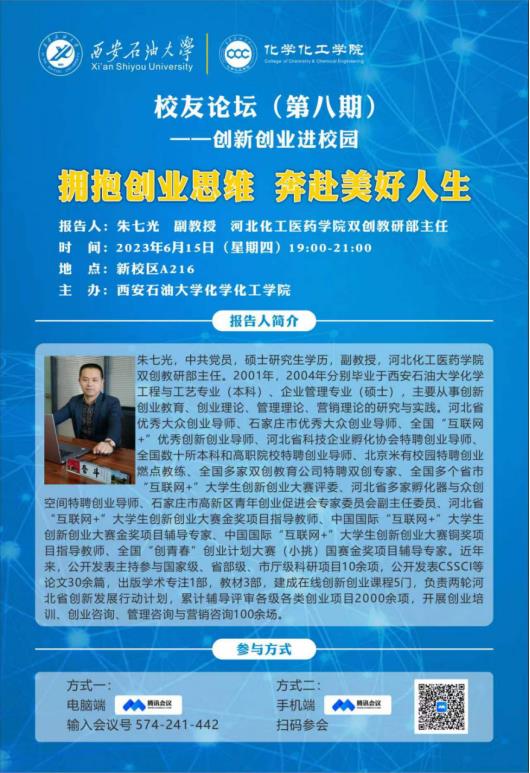 邀请2001届校友朱七光副教授,开展“拥抱创业思维,奔赴美好生活”专题讲座,吸引全院百余名学生到场聆听。