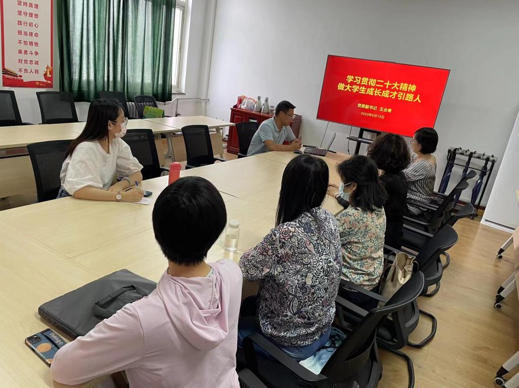 党委副书记王业青在华油能源楼727会议室为俄语系党支部全体党员讲授以“学习贯彻党的二十大精神,做大学生成长成才引路人”为题的主题教育专题党课,俄语系教工党支部全体党员参加学习。