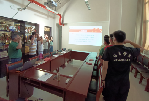 鲜红的党旗下,在党支部书记侯阳的领誓下,党总支书记倪振文和学生党员紧握右拳,面对党旗,重温入党誓词,回忆入党宣誓时的郑重承诺,眼神坚定,庄重严肃。通过重温入党誓词,汲取奋进力量,激励各位党员在新征程上永葆初心、勇担使命、终身践行入党誓词,立足岗位、履职尽责、践行使命,努力做新时代合格的“答卷人”。