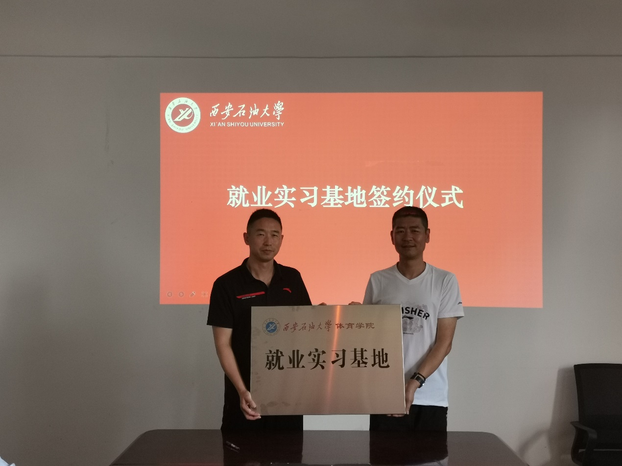 会谈结束,双方就建立学生实习就业基地达成一致,签署了实习就业基地协议,李寿邦院长向无锡汇跑体育有限公司授牌。