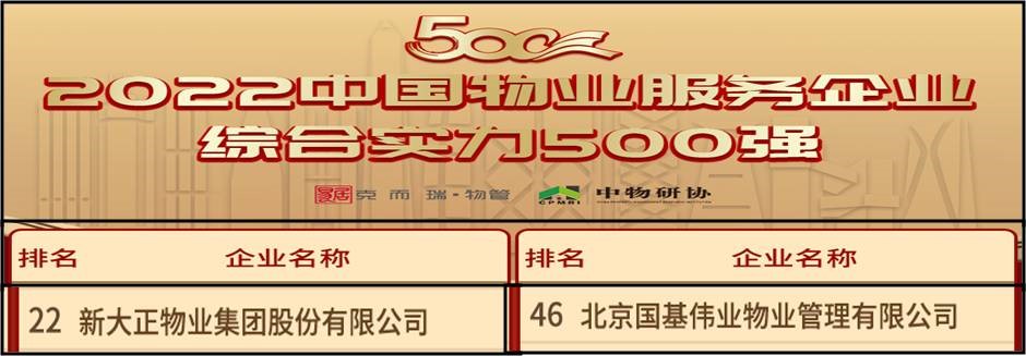 鄠邑校区室内物业的北京国基伟业物业管理有限公司位列第46名,同时该公司还荣获2022年中国德州扑克