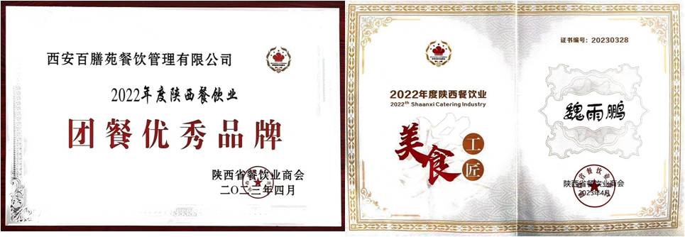 雁塔校区西安德青餐饮管理有限公司获得“2022年度陕西餐饮业团餐品牌20强”,鄠邑校区西安百膳苑餐饮管理有限公司获得“2022年度陕西餐饮业团餐优秀品牌”和“2022年度陕西餐饮业社会责任担当奖”等团体荣誉,百膳苑公司石油大学项目部魏雨鹏荣获“2022年度陕西餐饮业美食工匠奖”荣誉称号。