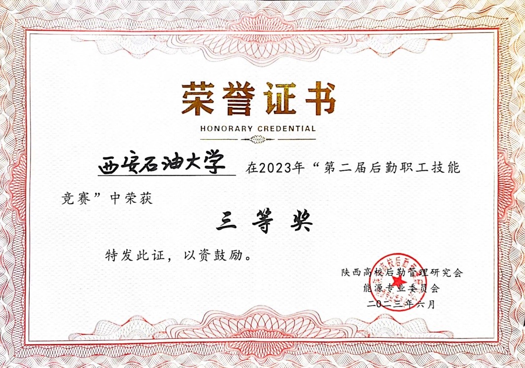 代表队,在6月6日陕西高校第二届后勤职工技能大赛上勇夺三等奖。