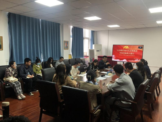 院长张海涛教授在雁塔校区华油能源楼818会议室为研究生第一党支部全体党员讲授了题为《以中国式现代化全面推进中华民族伟大复兴》的专题党课,党课由辅导员童玲主持。