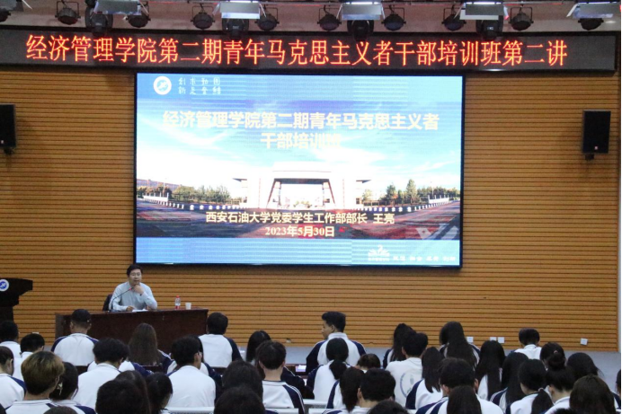第二期“青年马克思主义者培养工程”学生干部培训班第二讲在鄠邑校区崇文楼就业指导中心多功能厅举行。党委学生工作部(处)部(处)长、就业指导中心主任王亮应邀主讲。2022级参训学生干部170余人参加本次活动。